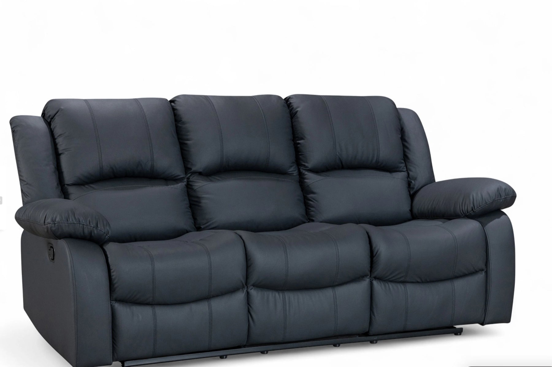 The Black Faux Leather 3 Seater Varesa Recliner Sofa offers a comfortable, supportive seat with padded cushioning across the back, arms, and footrest areas. Its manual reclining mechanism allows you to adjust into a laid-back position with a pull-lever, making it suitable for everyday relaxation.