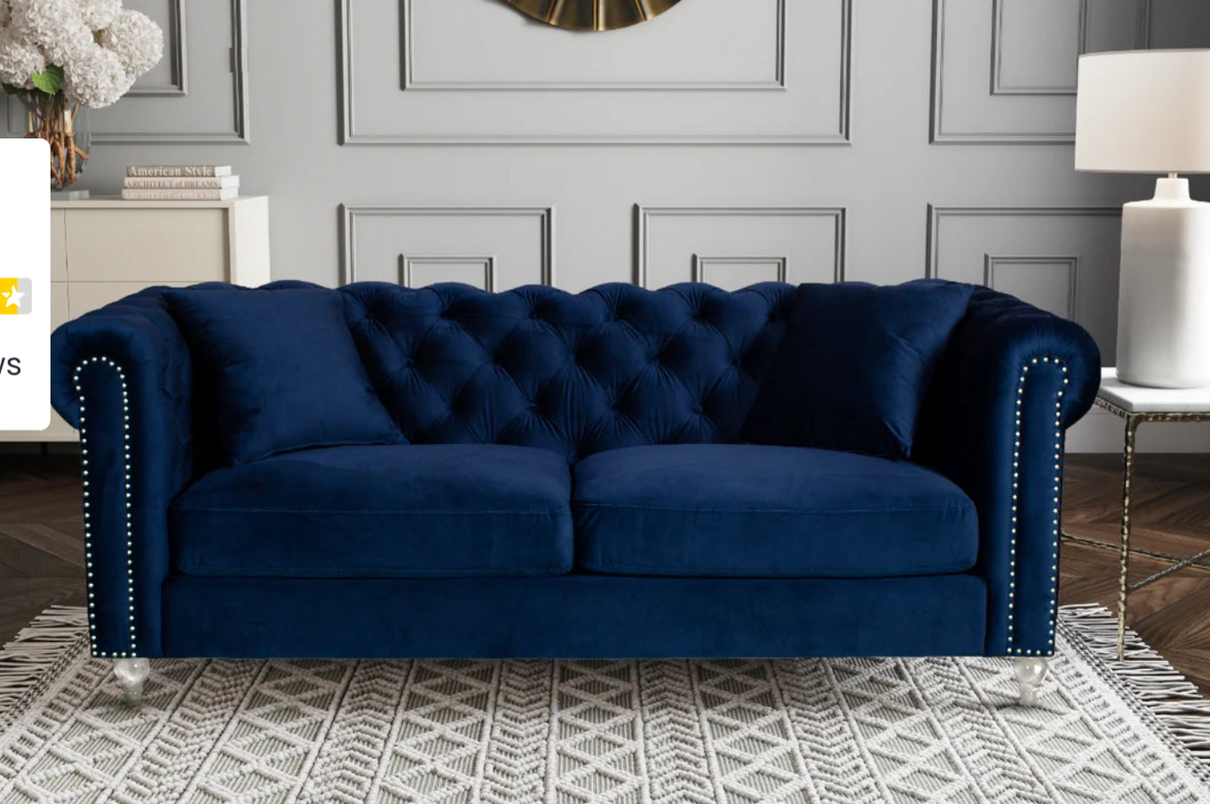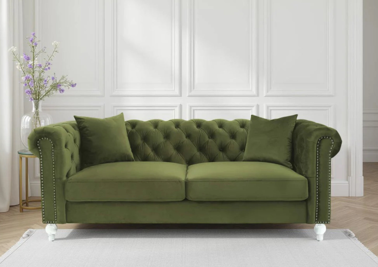 Alongside its upholstery, a distinctive feature of the Camden Chesterfield sofa is its unique acrylic feet; a contemporary reinterpretation on the classic design. The light acrylic feet contribute to the overall elegance of the sofa, and make it a definitive standout piece. Thanks to this, this piece provides versatility and is able to match both contemporary and classic interiors. The 3 seater configuration offers ample seating space, making it well-suited for larger living rooms. While it is the perfect piece to be standalone centerpiece, it can also serve as part of a larger matching set, as this design is also available in the 2 seater configuration.