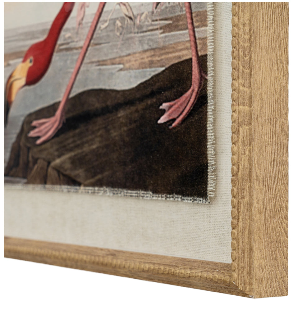 Flora & Fauna Collection Flamingo On Linen In Beaded Frame