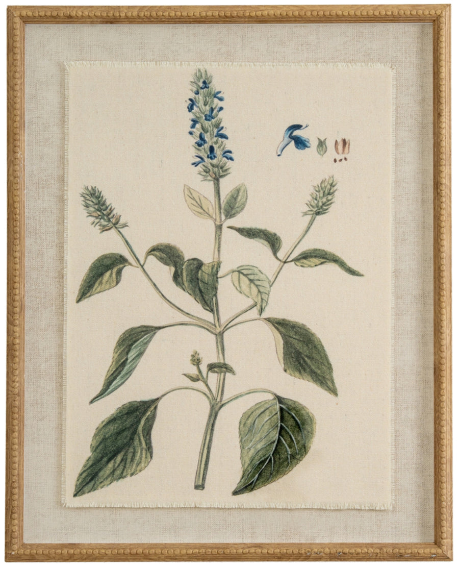 Flora & Fauna Collection Salvia On Linen In Beaded Frame