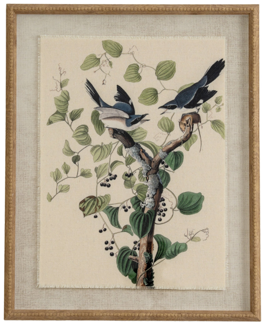 Flora & Fauna Collection Shrikes On Linen In Beaded Frame