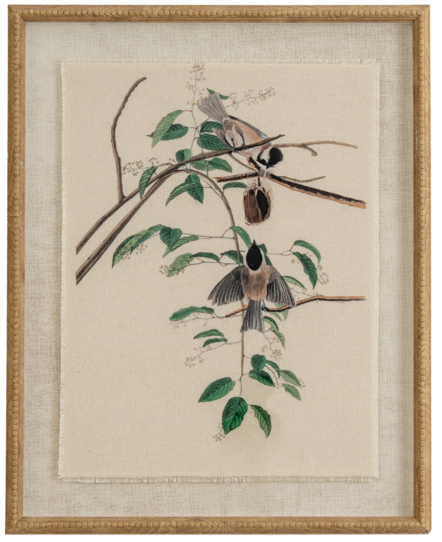 Flora & Fauna Collection Chickadees On Linen In Beaded Frame