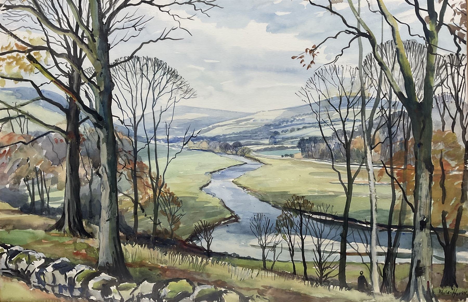 Discover a charming watercolour painting by British artist Walter Cecil Horsnell (1911-1997) at Duggleby Auctioneers. This piece, titled "View Across a Valley," captures the beauty of the countryside with meticulous detail and delicate brushwork.