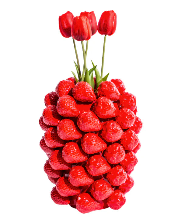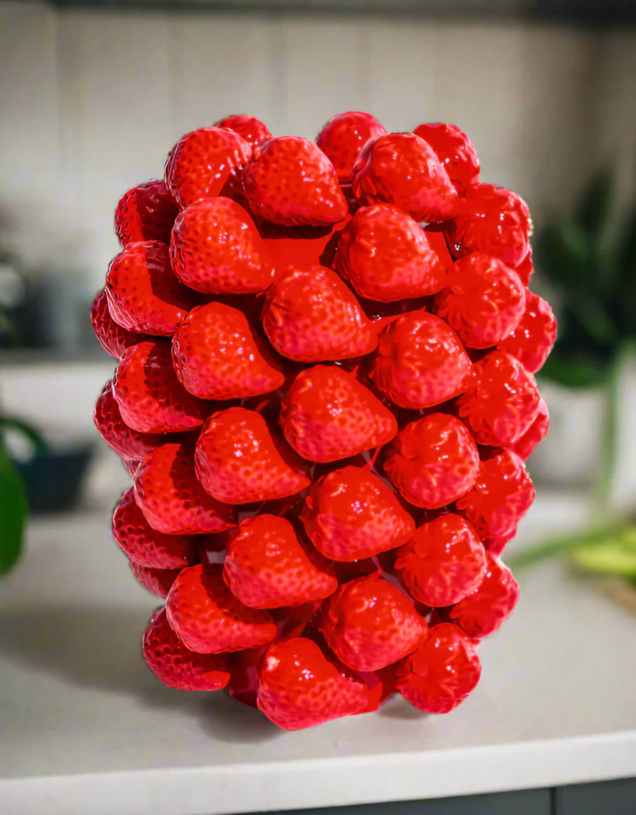Elevate your dining or living space with the Extra Large Multi Strawberry Vase. Crafted from ceramic, this 37cm high vase showcases 3D strawberries on the exterior, adding a unique and refreshing touch to any room. Perfect for displaying flowers or on its own as a statement piece.