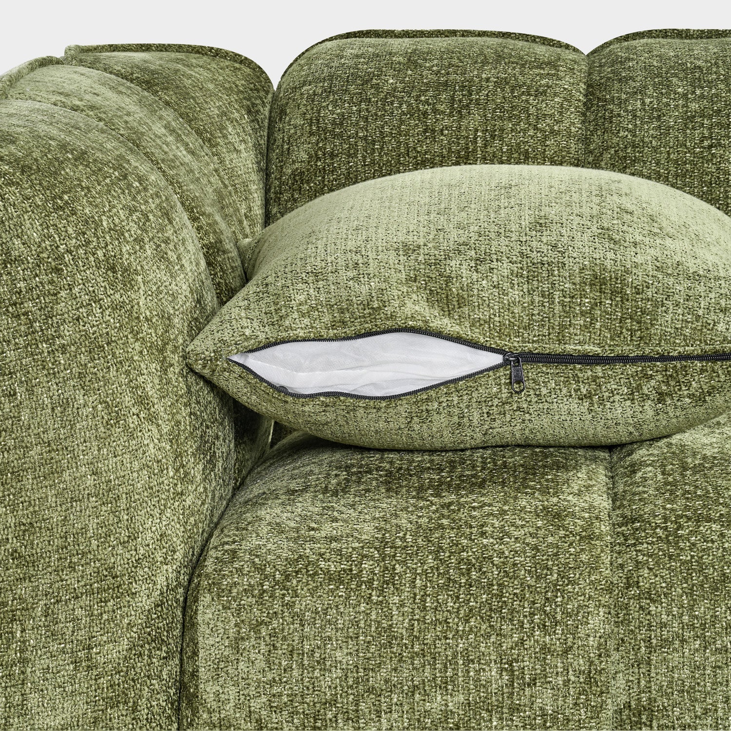Bring contemporary comfort to your home with the Venice Olive Sofa. Upholstered in soft, textured fabric with a chic channeled design, it offers deep seating and plush support for everyday lounging and stylish entertaining.