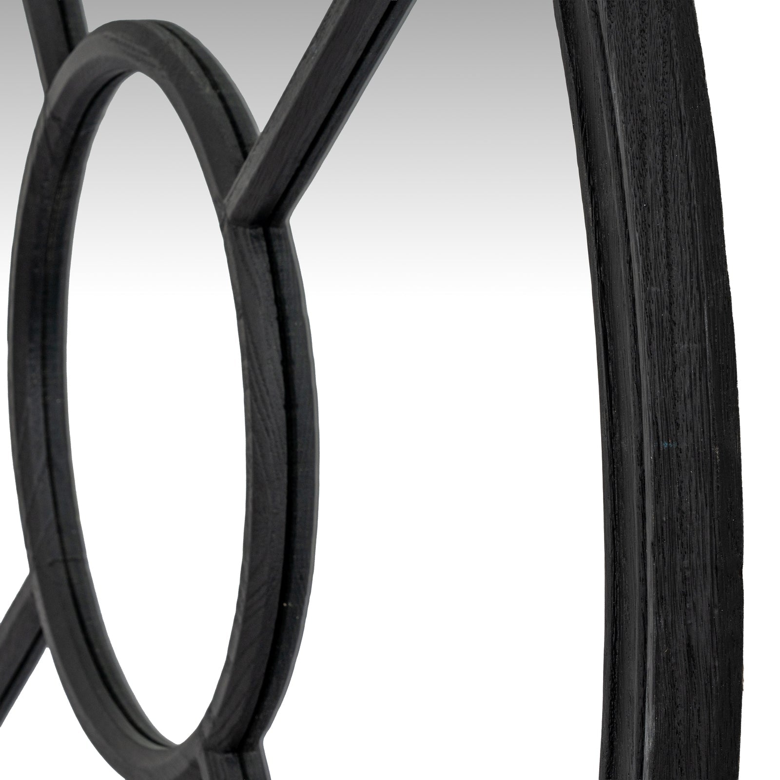 Round black wood mirror with window-style frame. Pairs beautifully with Washed Wood collection pieces. Perfect contemporary statement piece.